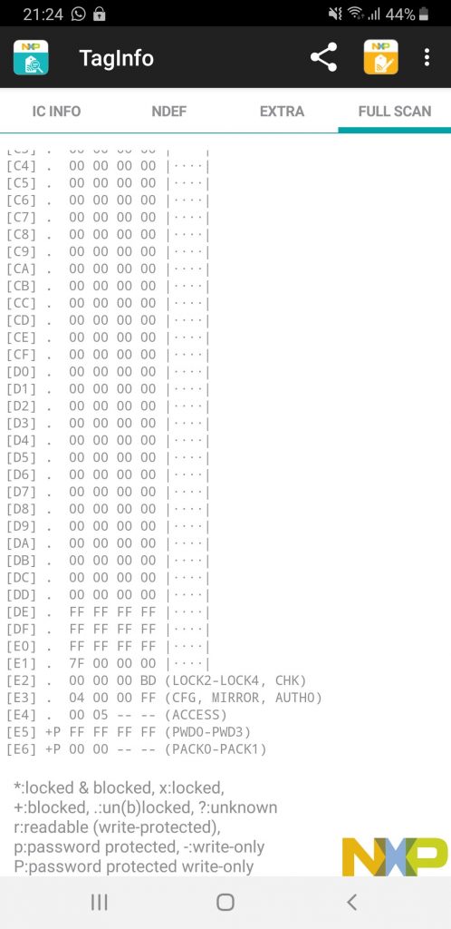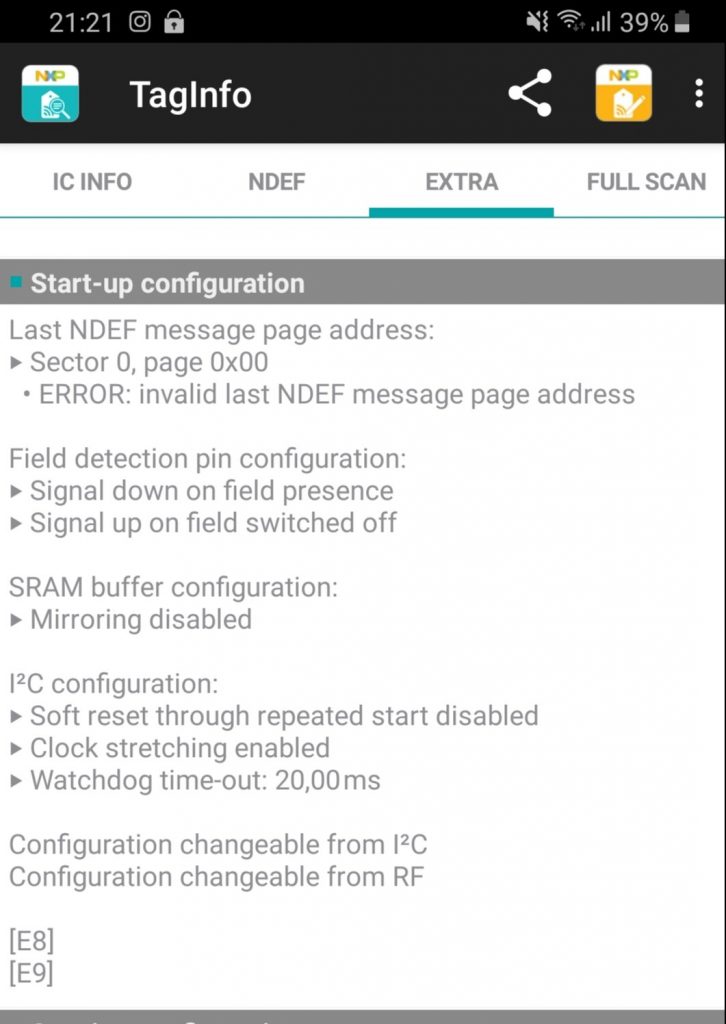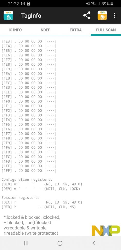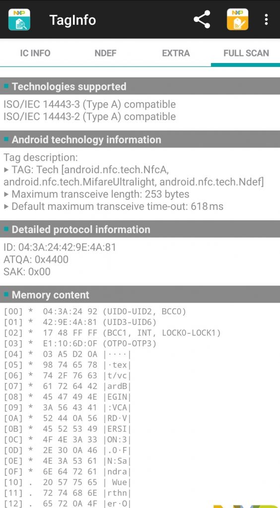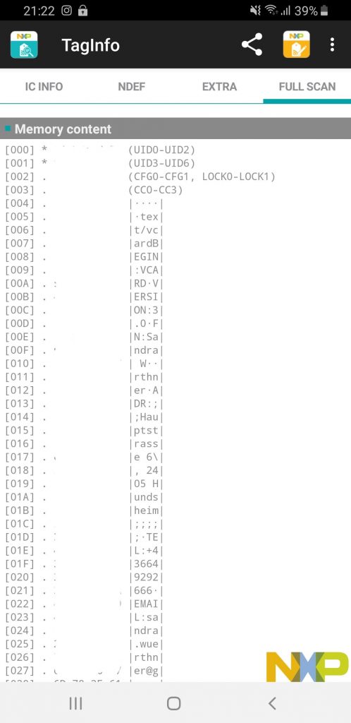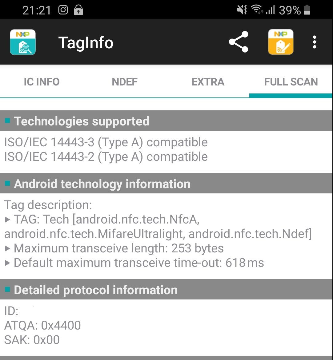 Mit der App Tag Info kann man seinen Chip scannen, ich zeige hier mal die einzelnen Bereiche her – gescannt habe ich den SIID
